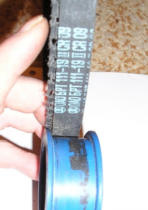 С ужасом увидел что от ремня осталось примерно 2/3 и все пространство под кожухом засыпано резиновой пылью.