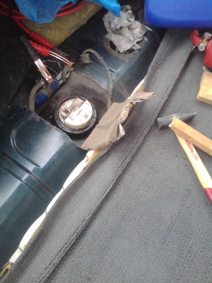 ну.. топор не топор, а ножницами вполне получилось. Приятно удивило качество покрытия, с улицы как в плёнке затянуто было, отслаиваясь открывался вид чистейшего блестящего железа. Другое дело что надежды на грязные сетки похоже не оправдались, гуталина я там не заметил, заборная сетка вообще валяется на чистом дне бака.. Видать придётся заказывать насос. И хорошо что не снимал бак без запасного.