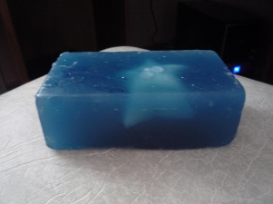 Очень классно получилось когда вот такой же синий "кирпич" был нашпигован белыми мыльными"камушками", а потом я его разрезала так, чтоб камешки разрезать, смотерось великолепно!!!