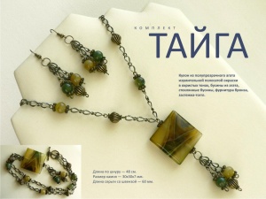 Этно-комплект из агатов "Тайга". Камень на подвеске имеет изумительную слоисто-полосатую окраску в охристых тонах.