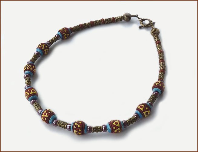 Керамика из Перу, стекло, металлофурнитура под бронзу. Длина 45 см (лежат по ключицам). Довольно тяжелые бусики. Фото крупнее.