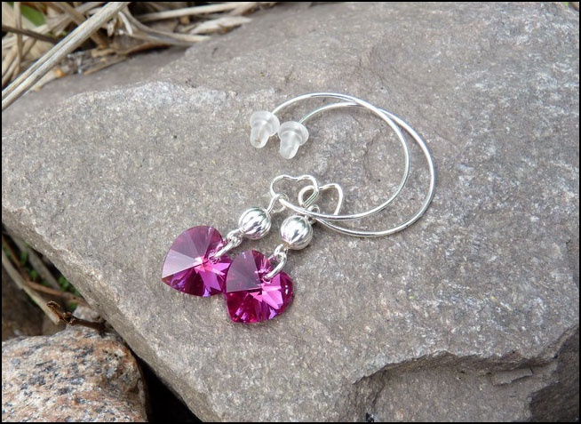 Посеребренные фигурные швензы с элементами в форме сердечек, рифленые бусинки - тоже посеребренные, кристаллы Сваровски цвета Аmethyst AB. Еще фото.