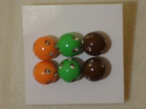 3.набор сережек - диаметр 1.1 см (оранжевые, зеленые, темно-коричневые) - 150 руб Новые