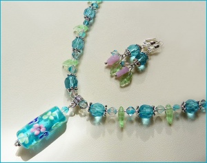 Кулон ручной работы с объемными цветами внутри стекла (США).