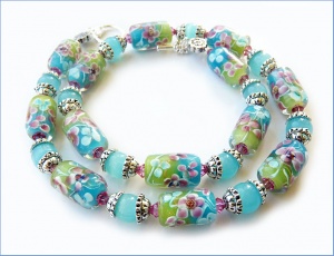 Комплект в Пандора-стиле. Лэмпворк, посеребренные металлические бусины и основа серег.*ЗАБРОНИРОВАНО*