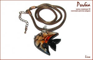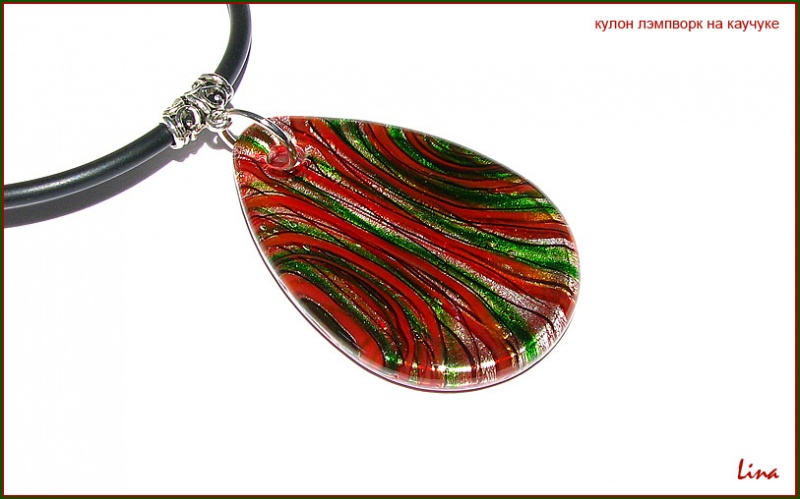 Кулон №1 (полоски бирюзовые-медные) на цепочке - ПРОДАН.
