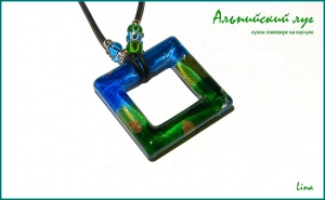 "Голографический" кулончик + серьги к нему. Дихроическое стекло, кристаллы Сваровски, бисер, металлофурнитура, ювелирный тросик. Длина по шнуру — 47 см. Размер подвески — 4х3 см. Дихроическое стекло содержит многократные микрослои окисей различных металлов (золото, серебро, титан, хром, алюминий, цирконий, магний, кремний), из-за которых оно приобретает особые оптические свойства — переливающиеся сверкающие слои меняют свой цвет в зависимости от угла обзора. 850 руб.ПРОДАНА
