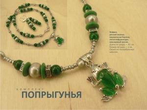 Комплект "Попрыгунья": нефрит, речной жемчуг, окрашенная бирюза, металлофурнитура, бисер, ювелирный тросик. Длина по шнуру - 56 см. Серьги на посеребренных швензах. 850 руб.
