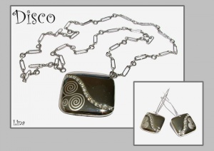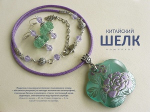 Комплект "Китайский шелк": подвеска из высококачественного полимерного сплава с объемным рисунком (по текстуре напоминает шелкографию), стеклянные бусины «лэмпворк», стекло, текстильный шнур, фурнитурa, стилизованная под черненое серебро.Продан.