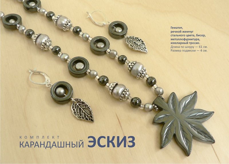 Монохромный комплект из гематита, натурального речного жемчуга цвета "металлик" (крупный 9 мм, мелкий 5 мм) и металла под черненое серебро. Серьги на швензах из серебра. 1150 руб.