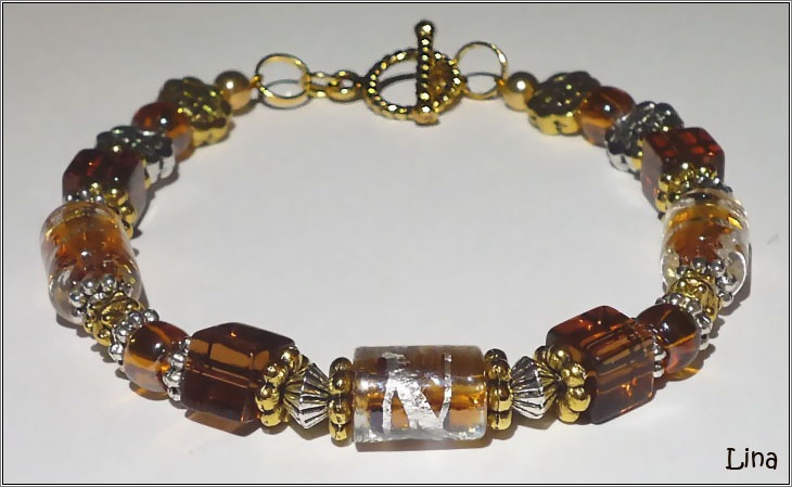 Венецианское стекло, посереберенные втулки бусин, посеребренная основа браслета, металл.