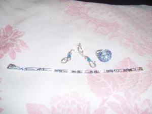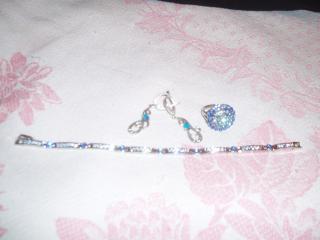 "Синий" комплект. Серьги - серебро 925, фианиты;браслет и кольцо - стразы, ювелирный сплав. Все новое, не ношено, очень красиво смотрится вместе. Кольцо на размер 17,5 примерно. По отдельности: серьги-400, браслет-100, кольцо-100, все вместе отдам за 500