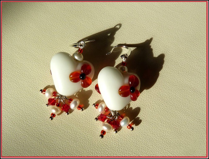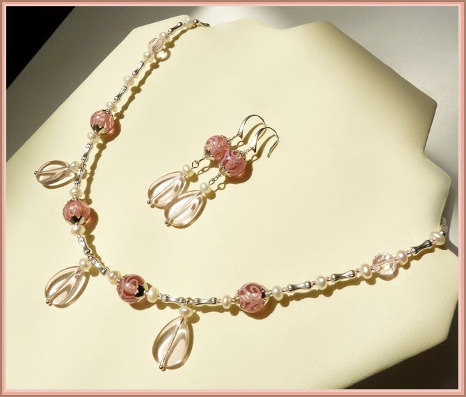 Лэмпворк (Чехия), стекло, натуральный жемчуг, вся фурнитура посеребренная.