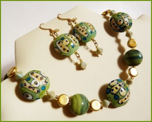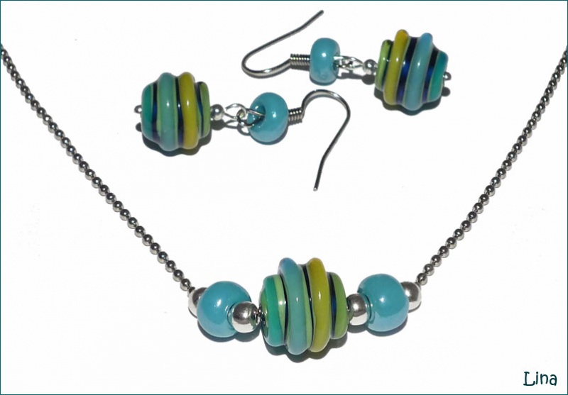 Комплектик на каждый день. Чешский полосатый лэмпворк в сине-зеленых тонах.Продано.
