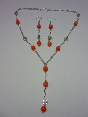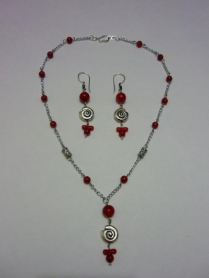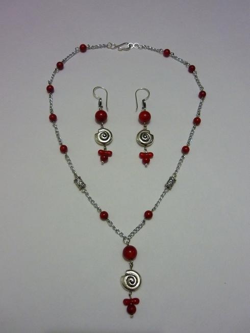 Коралл, металлические бусины, серебряные швензы.