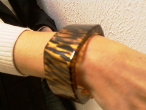 У меня есть пластиковый леопардовой расцветки браслет, надо сфотать