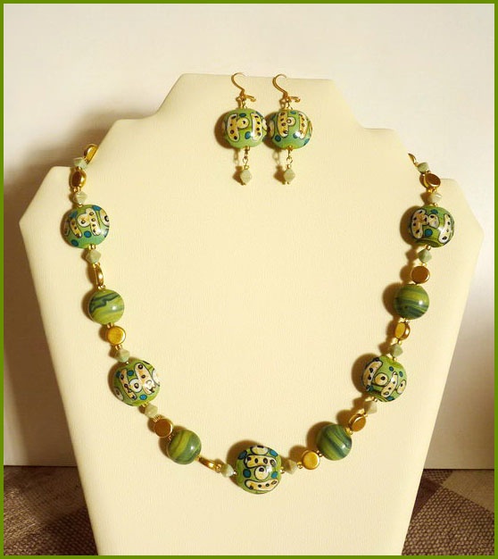 Длина колье - 45 см, длина серег от швензы - 4,5 см. Колье крупнее, серьги крупнее.