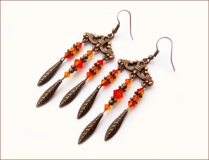 Два вида кристаллов Сваровски - Fire Opal (с переходом цвета от оранжевого к красному) и Sun, медь.