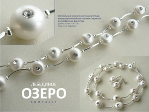 Пара изящных комплектов из необычного жемчуга, на позолоченной и посеребренной фурнитуре. Жемчуг в обоих комплектах довольно крупный,- жемчужина 10 мм. "Золотая жила": колье- 850 руб., браслет- 450 руб. , серьги- 160 руб. "Лебединое озеро": колье - 1200 руб., серьги- 300 руб (на серебре).