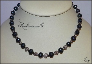 Жемчужный контрастный комплект "Речные лилии". Речной культивированный жемчуг разной формы и размеров, подвеска из натурального перламутра, металлофурнитура под черненое серебро, ювелирный тросик. Серьги на серебряных швензах. Длина по шнуру - 50 см. Размер подвески - 65х45 мм. 1350 руб.ПРОДАН.