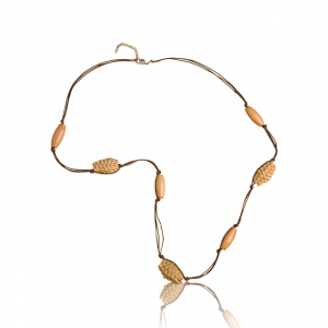 Ожерелье из натуральных материалов декорировано плетеными элементами и продолговатыми деревянными бусинами. Не содержит никель. Длина: 45 + 6 см дополнительно.