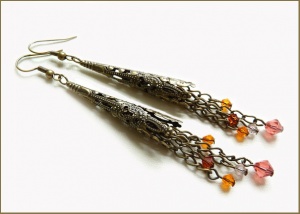Латунь, кристаллы Сваровски цветов Indian Red, Light Ametist, Padparadscha и Sun.