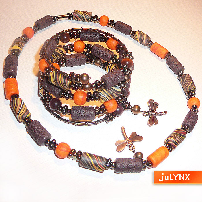 Бусы под шейку (42см) на магнитной застежке и браслет на проволоке с эффектом памяти.