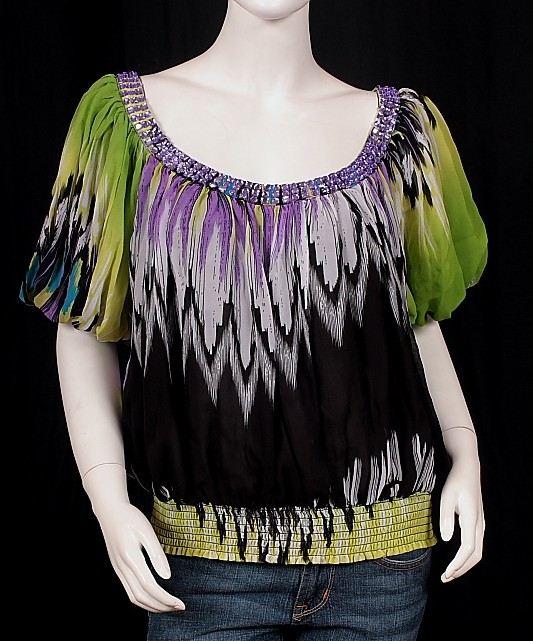 Натуральный шелк, подклад из шифона. Модные цвета. На спине от резинки до пуговки на шее разрез, вырез впереди вышит стразами.