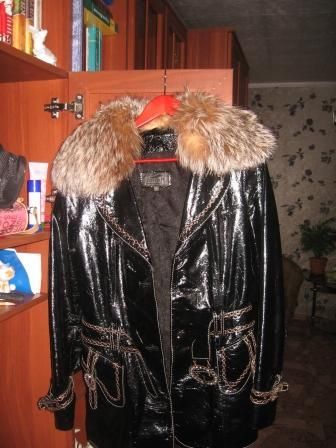 Снижаю цену в предверии праздника на куртку Ист-Нова, кожа натуральная, лак, размер М, толщина как кожаный плащ, ворот мех енота, длина до середины бедра, 3т, б/у осень 2009