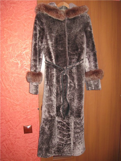 Продам шубу мутоновую, длинную, прямую, с капюшоном, по бокам разрезы, с пояском.