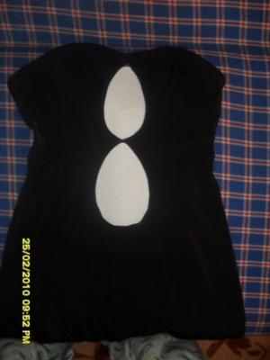 Шикарное маленькое черненькое вечернее платье! Спереди две дырочки! Для небольшой груди! Есть чашки! Шито на заказ, на новый год…так и не одето! Очень красивое! Продам 2000! мне мало