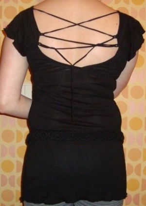 кофта черная, с декоративным элементом из бусинок на груди, так же есть декоративные лямочки. размер 44-46, цена 250р, торг.