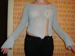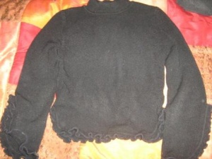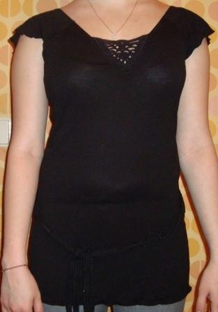 и еще одна кофточка, черная, фото не очень удачно, р-р 42-44, на фигуре смотрится как водолазка, рукава клеш от локтя, отличное состояние,150 руб.