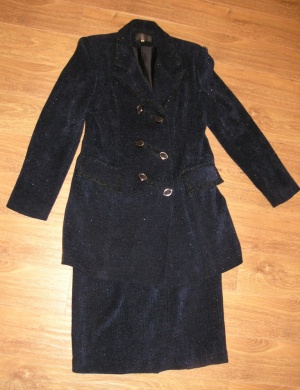 Б/у мало,только по праздникам. Фирма VERETENO. Маркировка 164-88-96. Пиджак приталенный,застежка на много крючочков,сзади пайеток нет, юбка на поясе обычная,прямая,короткая, сзади шлица. 600руб.