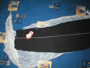 брюки спортивные черные с белым кантом сбоку , р-р 52-54. - х/б , вискоза и эластан - новые - 500 р.