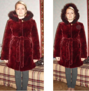 длина - до колена, с капюшоном