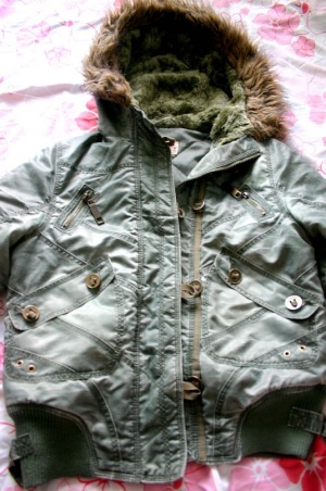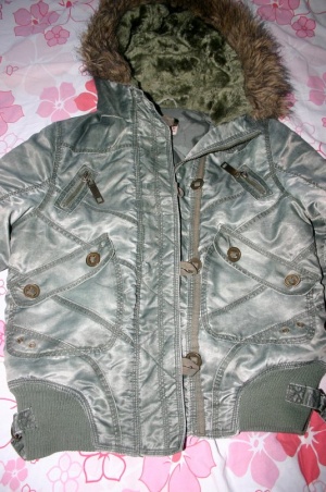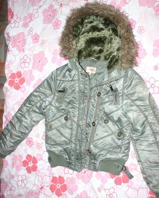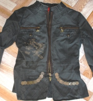 И куртку темно-зеленую с металлическим декором на карманах, замками-ангелочками, идеальное состояние 42-44 размер - 500р