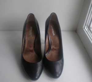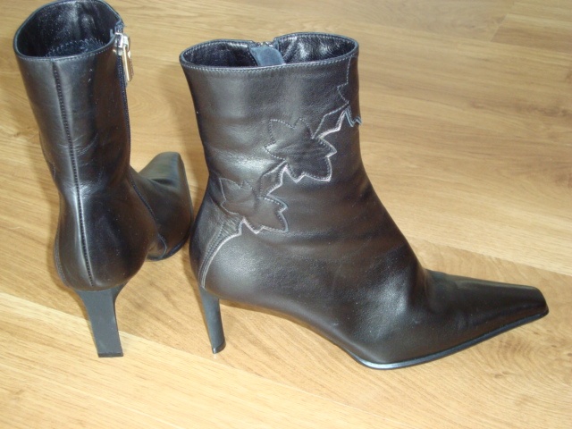 ботиночки черные деми, новые, 36 размер, каблук 7 см, устойчивая колодка, на внешней стороне оформлены цветочки. на невысокий взъем (потому и не носились)