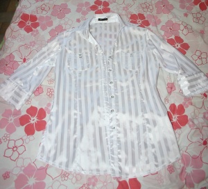3) Белая блузка. Одевала всего 1 раз. Состояние новой. Размер 44-46. 300 руб