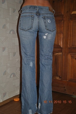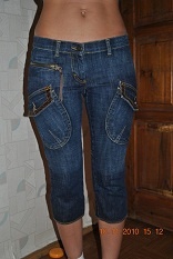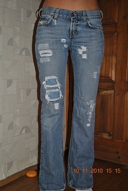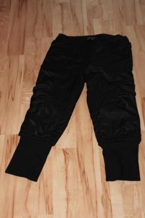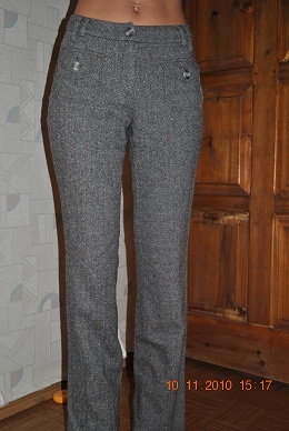 Штаны классные, интересная отделка, сделаны бриджами, по низу - резинка, ее можно и в сапоги заправить, и сверху. Состояние почти новых, только стразинка отвалилась одна, но они черные, не видно.