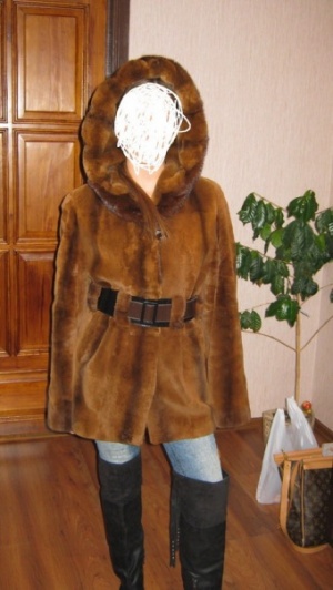 Р-р 42-46. Шуба застегивается на клипсы. Капюшон большой двухсторонний укладывается в красивый воротник, имеется доп.крючок под горло. Выделка очень качественная, шубка легкая и мягкая, но в то же время мех очень густой, пушистый и блестящий. Шуба очень теплая.