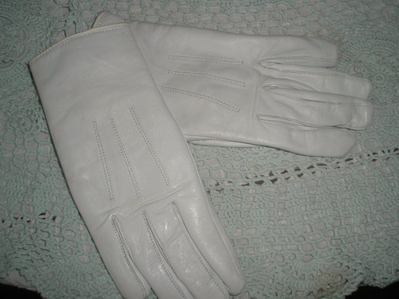 Белые перчатки в идеальном состоянии. Белые, нат. кожа. Подклад типа флиса. На крупную ручку. 250 руб.