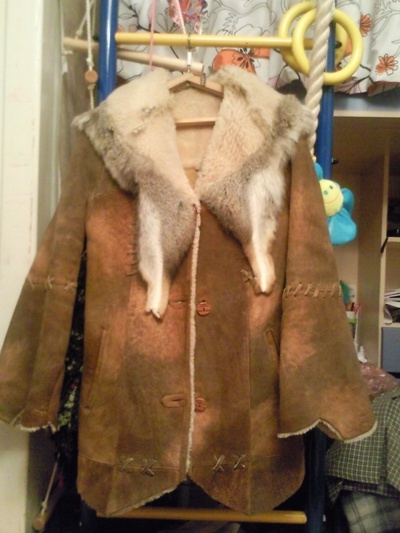 6) Дубленка состояние 5-,практически не носила. Очень теплая, ниже колен.р-р 42-44. 600р.