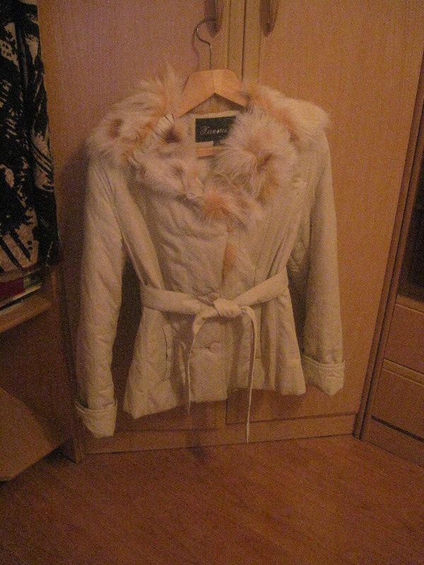 Продам итальянскую куртку на синтепоне, с капюшоном, подбитым натуральным мехом под рысь, состояние идеальное, р.44-46, цвет беж, с поясом, куплена за 8 т.р., продам за 3 т.р.,