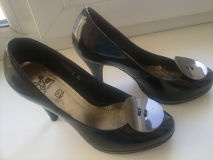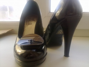 Туфли на высоком каблуке, черные лаковые. Каблук: 10 см. Размер 36.Не подошли по размеру. Фирма Moda Donna. тел.8913-777-63-54