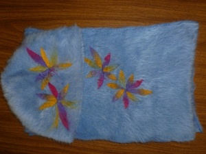 2) на весну шапочка и шарф из ангорской шерсти, плотной вязки (ношена максимум 10 раз), к сожалению мне не идет этот цвет(((. Цена 150 р.