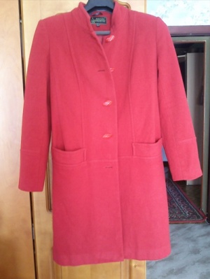 В этом пальто невозможно остаться незамеченной. Алое, экстравагантное и очень женственное. Polo by Ralph Louren. Приталенный силуэт, необычный насборенный воротник, примечательные принты – аля тест Люшера. Я в этих кляксах вижу всадников, а вы?:-). Ткань – 70 процентов шерсть, 30 – хлопок. С подкладом. Качество отличное. Это плотная вещь на межсезонье, думаю, от 0 градусов до +15. Маркировка M на 42-44 ( с плотными вещами и пиджаками) или 44-46 ( с легкими вещами или перешить несколько пуговиц). Замеры: длина рукава 60 см, общая длина 90, плечи -38 см. Заказала себе на иностранных сайтах два похожих красных пальто, одно оставляю себе, второе (это) пристраиваю за 3150.