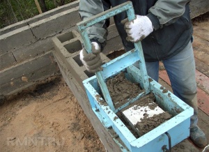 Но ничто, думаю, не мешает отдельно в тазике миксером намешать цветную смесь и закладывать её в "лицевую" часть блока.Увы, мешает. Собственно жесткость смеси и помешает, миксер не справится с качественным промесом. Но если применять удлинённые опалубки (с бОльшим объемом разовых засыпок), то можно в одной и той же груше поочередно мешать порцию с пигментом для наружного слоя и затем порцию без пигмента. Если потом немного пигмента со стенок "груши" попадет в бетон внутренней стены, это её не испортит.