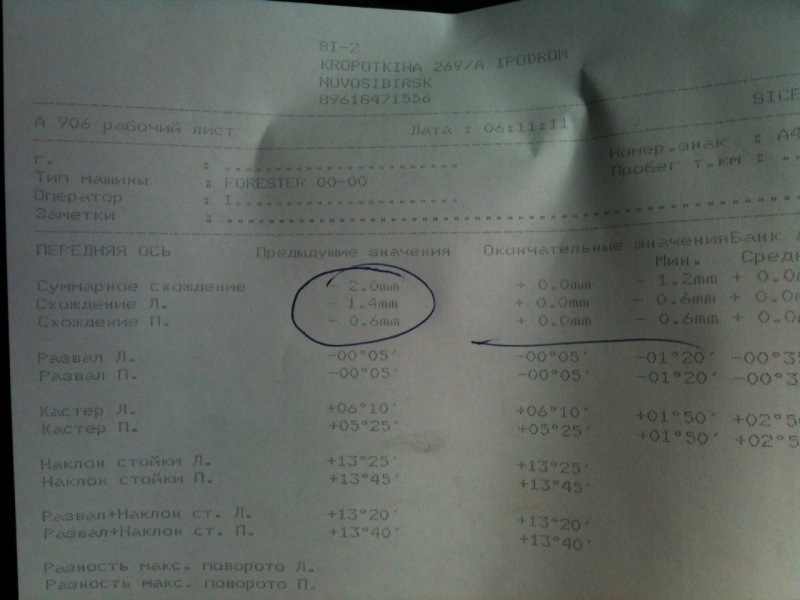 Кстати, забыл сказать - мне, как видно в ЗН, делали и развал/схождение по моей же просьбе.