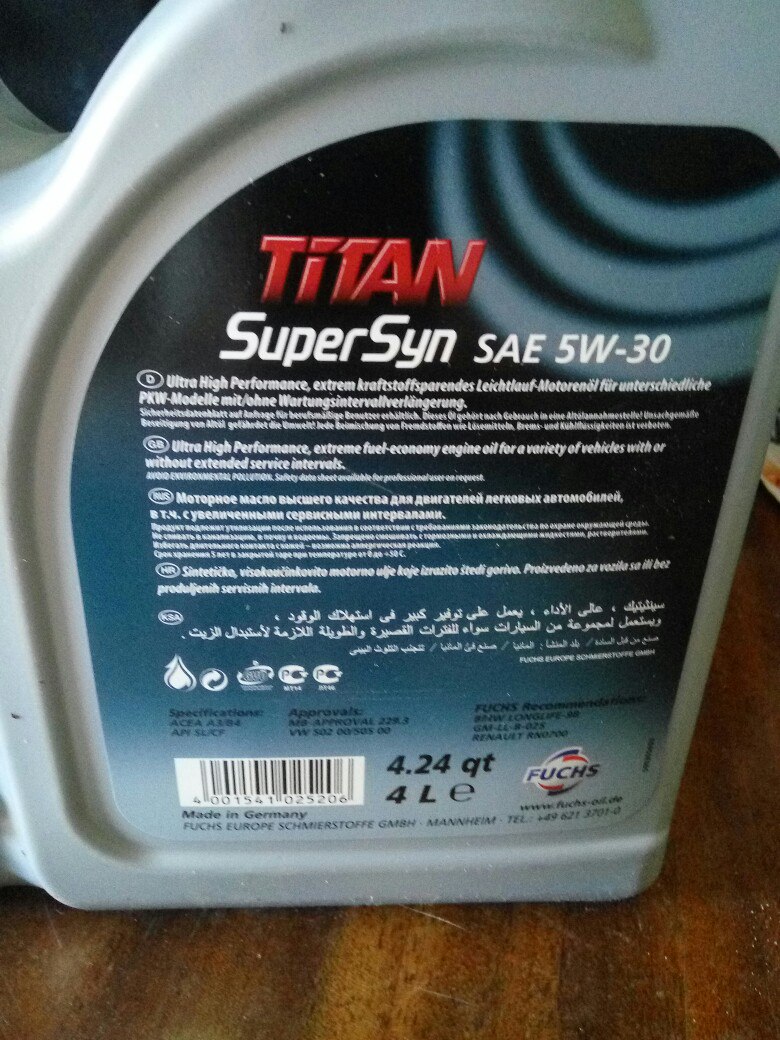 по маслу, съездил всё таки к этому дилеру Фугс - сам убедился, выбрали, пока на лето 5в30 (фото привожу, допуск 502й там есть) - но пока думаю, что заменить его у дилера авто на 7,5 ткм, - 2 тр, достаточно весомая цифра для замены, но она с фильтрами и каким-некаким осмотром, а мож чего ещё найдут и по гарантии заменят, итд..
